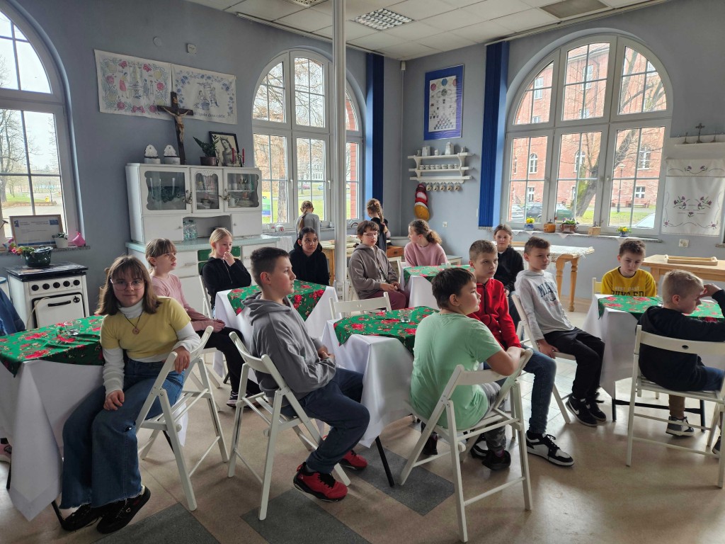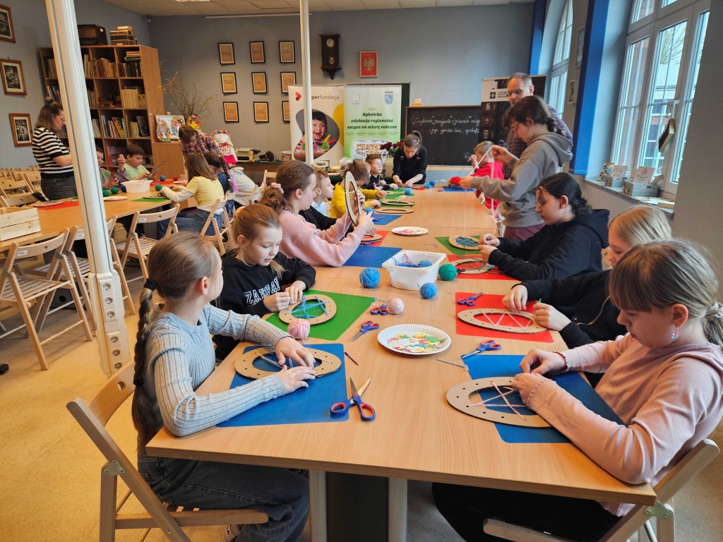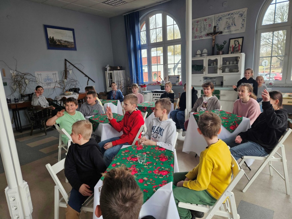 Uczniowie najpierw poszerzyli swoją wiedzę o wielkanocnych tradycjach, a później wzięli udział w warsztatach, w trakcie których wykonali piękne dekoracje świąteczne.