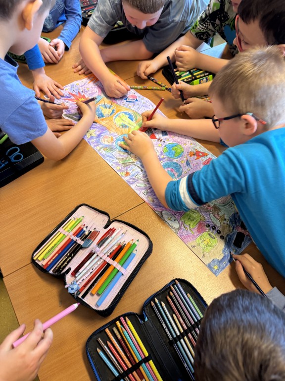 Uczniowie budowali konstrukcje z klocków LEGO, rozwiązywali zagadki prowadzące do tajemniczych walizek, a w nich znajdowali narzędzia potrzebne do wykonania kreatywnego zadania techniczno-plastycznego.