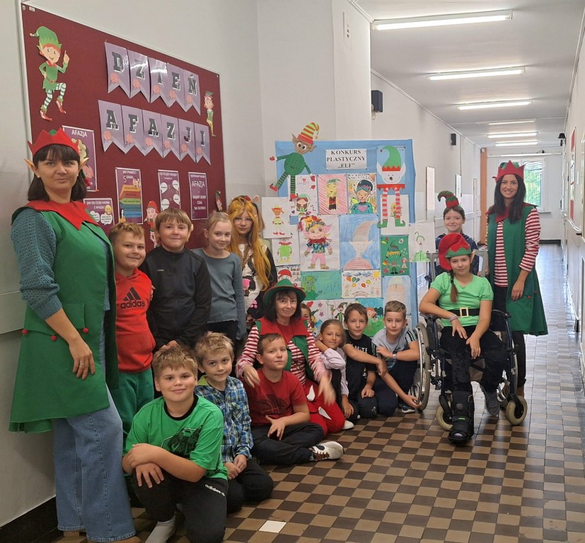 Wśród nas uczy się coraz więcej dzieci z zaburzeniami mowy i języka. Wiemy, że symbolem afazji jest elf, dlatego też, aby wyrazić naszą solidarność z dziećmi z afazją, wielu z nas przebrało się za elfa.
