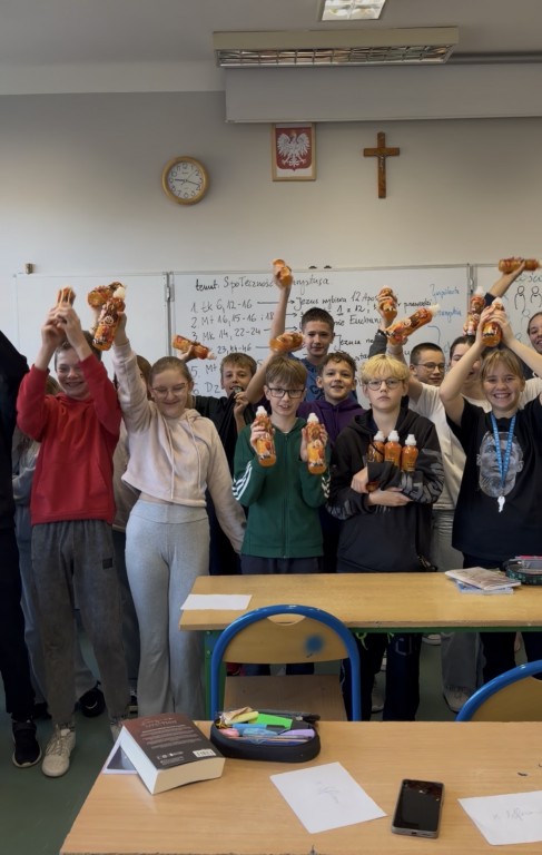 W nagrodę klasa otrzymała wiralowe napoje Wojanki oraz autografy samego ks. Sebastiana Picura, popularnego tiktokera i duszpasterza młodzieży.