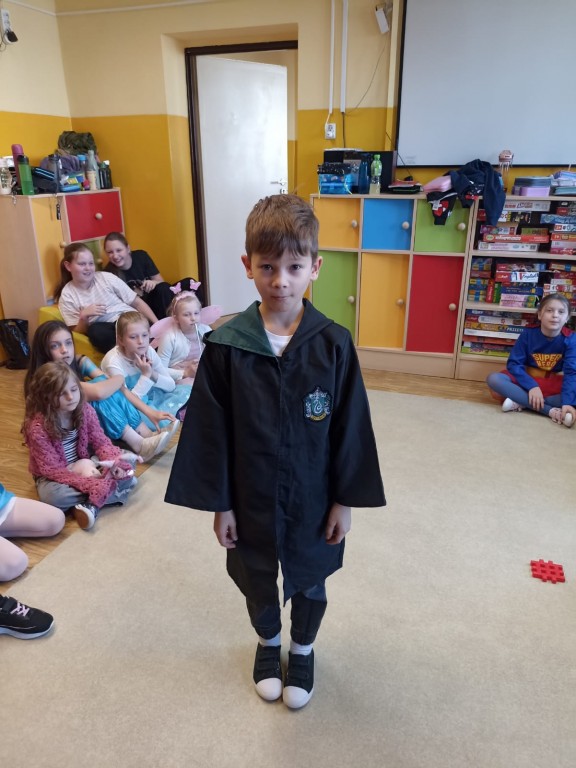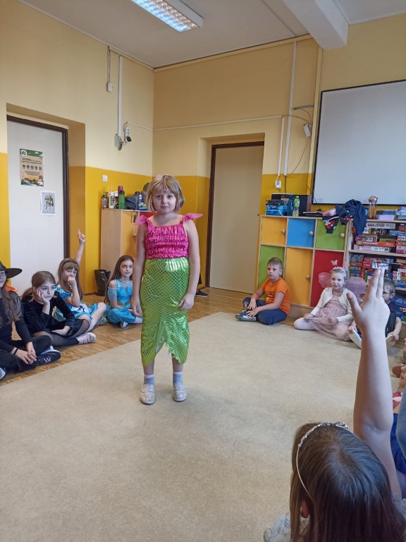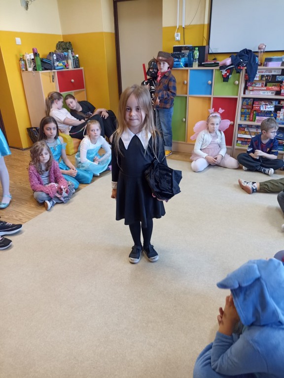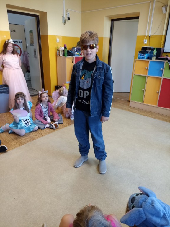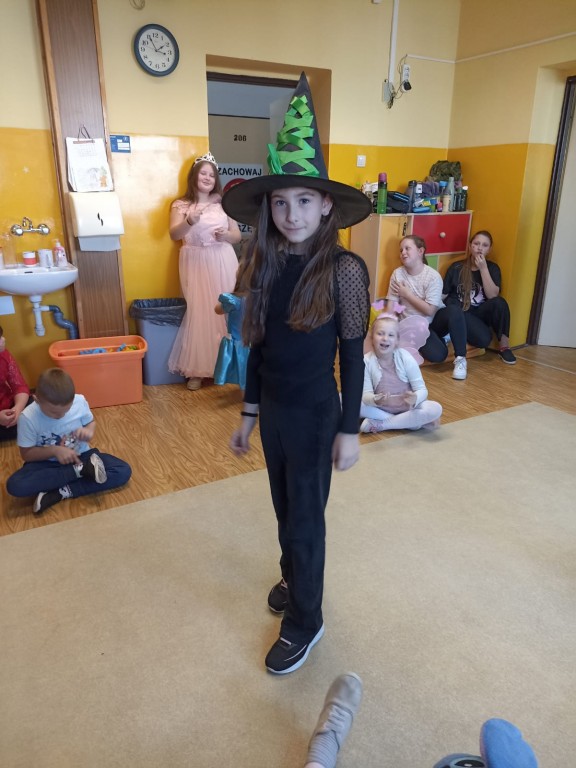 Było kolorowo, radośnie i bajkowo! A po południu na świetlicy dzieci zaprezentowały swoje przebrania w pokazie mody przy dźwiękach muzyki.