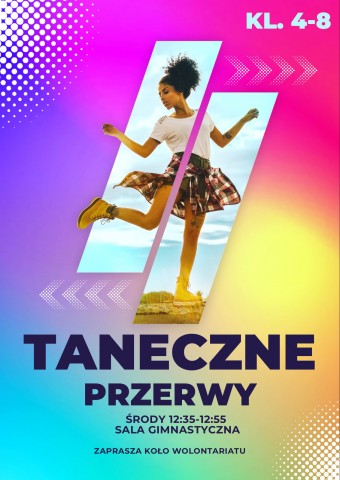 Koło Wolontariatu serdecznie zaprasza wszystkich uczniów klas 4–8 na TANECZNE PRZERWY!