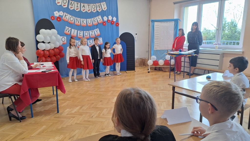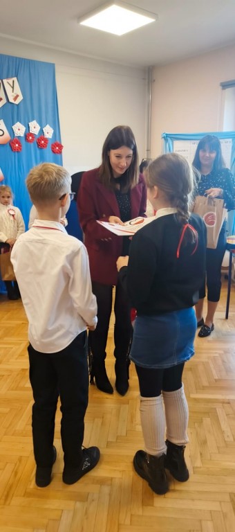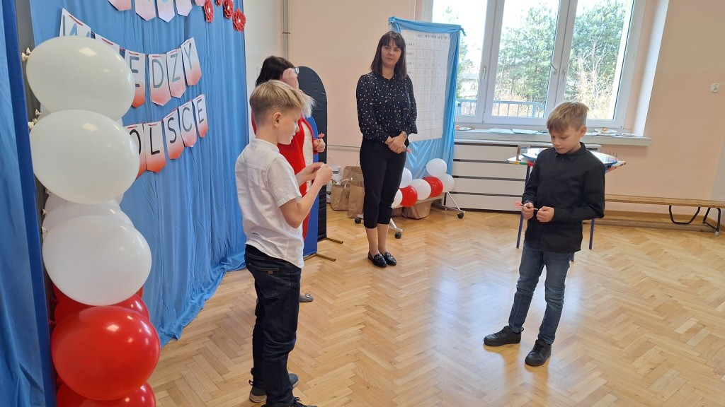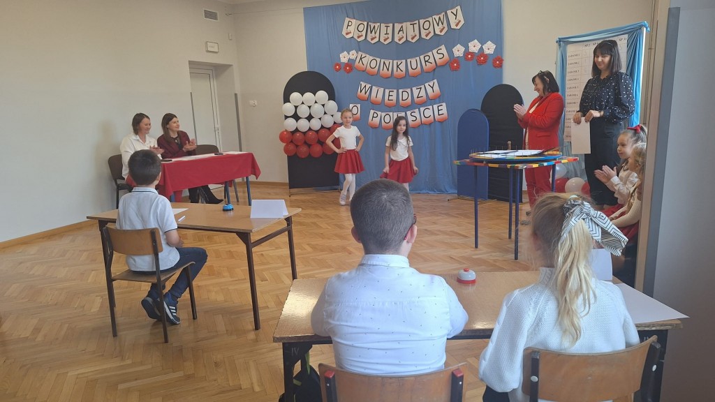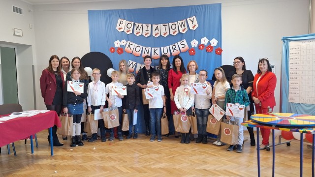 Konkurs urozmaicały występy uczniów z klasy 1a oraz 3b, którzy recytowali wiersze oraz śpiewali piosenki o tematyce patriotycznej. Nad prawidłowym przebiegiem konkursu czuwała wicedyrektor szkoły p. Aleksandra Bulla.