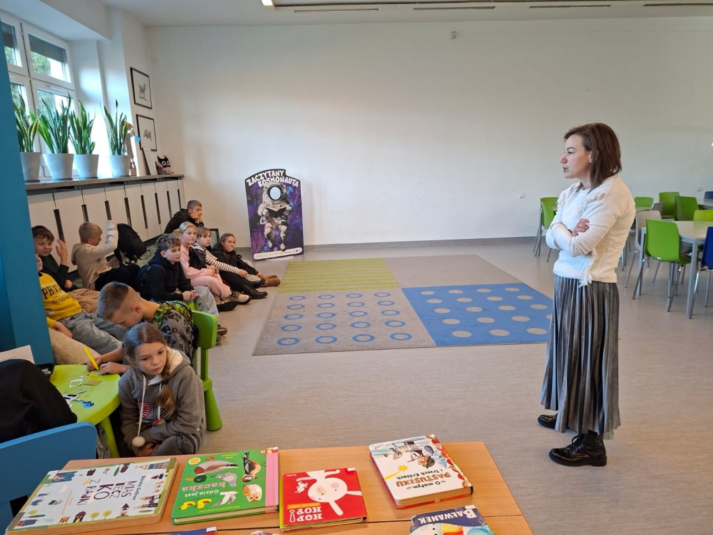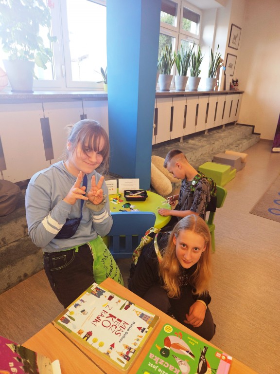 Podczas wizyty mieliśmy okazję obejrzeć film „Lily”, a także zwiedzić bibliotekę i poznać jej działalność.