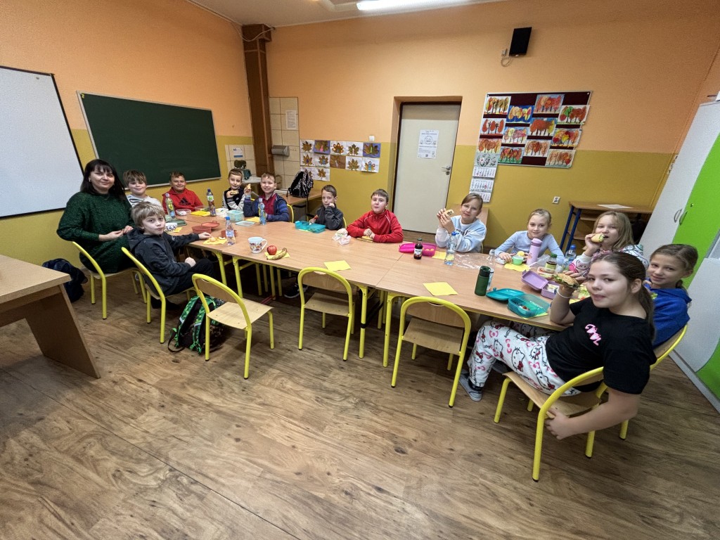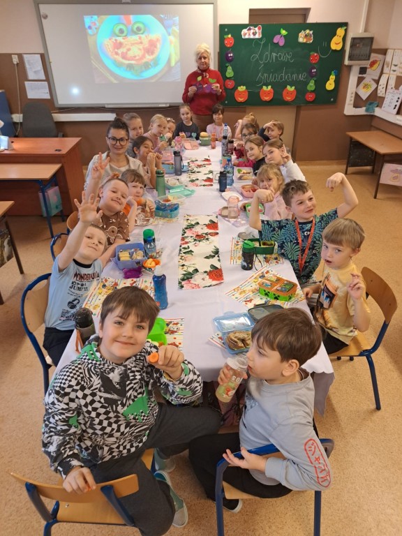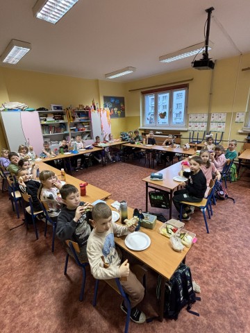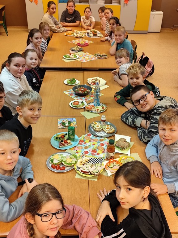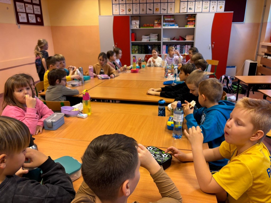 Dzieci przyniosły do szkoły zdrowe kanapki oraz przekąski, które następnie mogli zjeść razem z koleżankami i kolegami z klasy