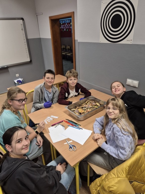 Dzieci kończyły dekoracje, ustalały ceny (handel na najwyższym poziomie!), tworzyły plakaty, pakowały ciasteczka… i dzielnie walczyły z pokusą, żeby nie zjeść swojego przyszłego utargu.