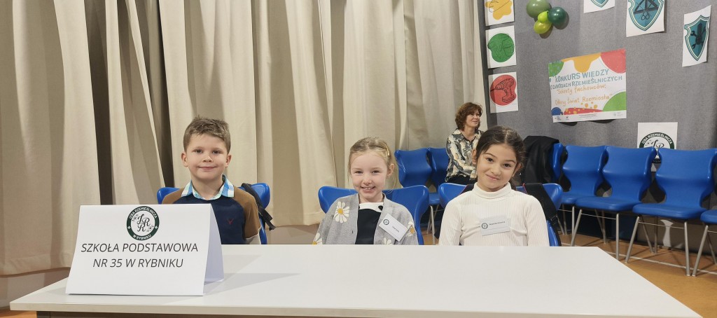 W czwartek 27 listopada trójka najmłodszych uczniów z klas Ia i Ib (Zofia Hałat, Antonina Wypenda i Antoni Naparstek) reprezentowała naszą szkołę w konkursie zawodów rzemieślniczych organizowanym przez Izbę Rzemieślniczą w Rybniku.