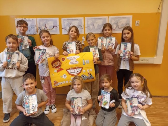 W ramach projektu uczniowie wykonali zadanie polegające na przygotowaniu plakatu promującego higienę jamy ustnej pt. „Uśmiech to moja supermoc – dbam o zęby każdego dnia!”.