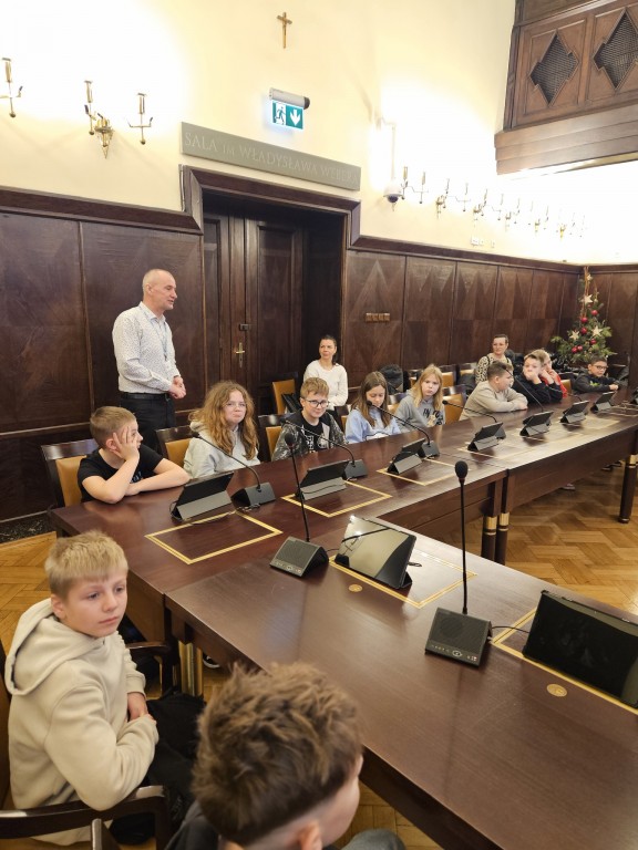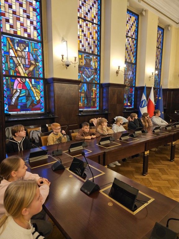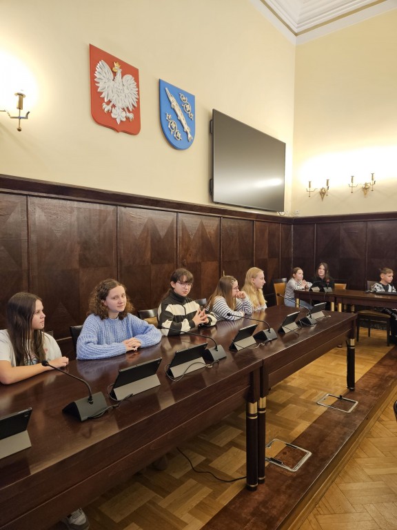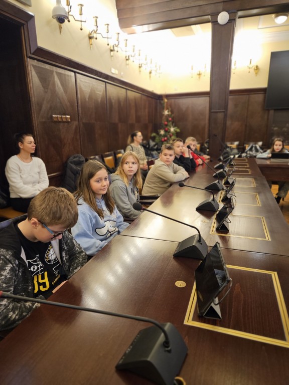 Odwiedzili także salę obrad Rady Miasta, w której mogli poczuć się jak prawdziwi radni, biorąc udział w zabawach polegających na głosowaniu.