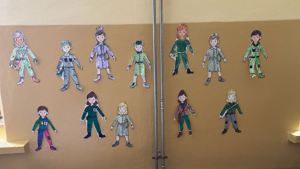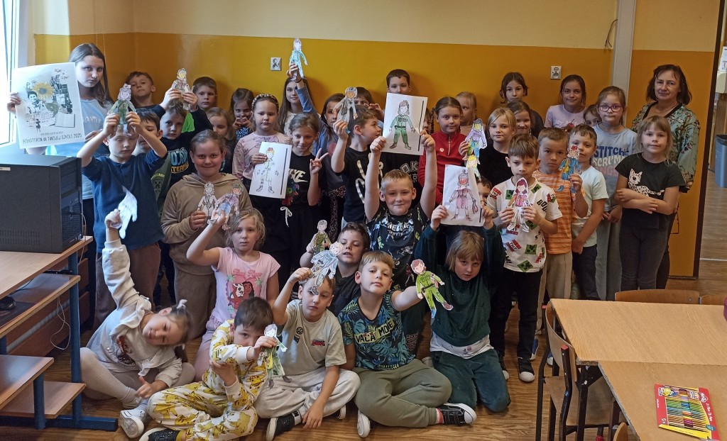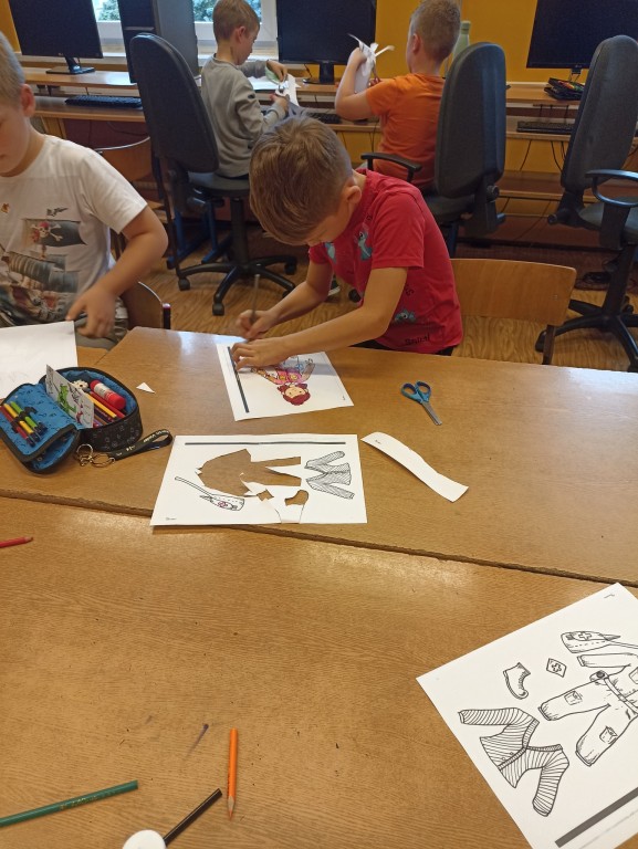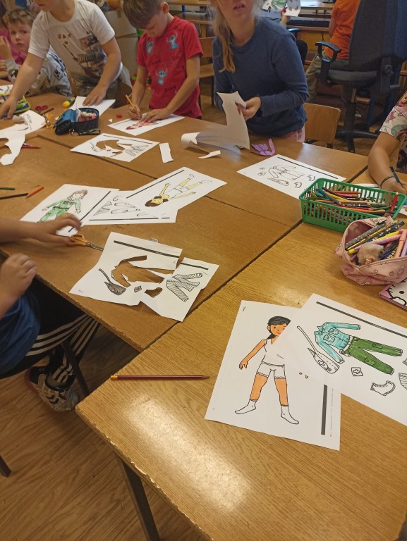 Oprócz zdobywania wiedzy teoretycznej dzieci wcieliły się w rolę projektantów, wykonując stroje dla papierowych postaci kobiet walczących na różne sposoby w obronie Warszawy.