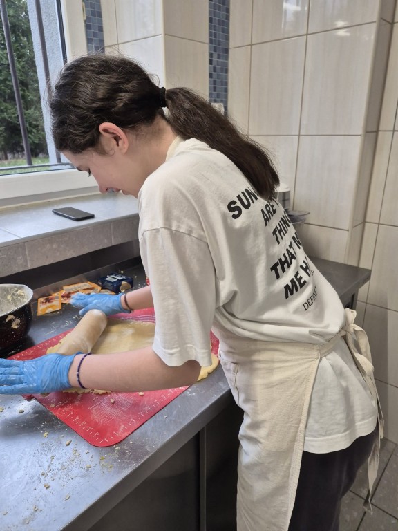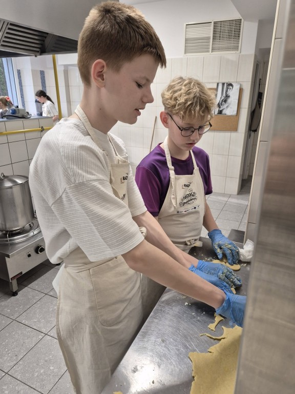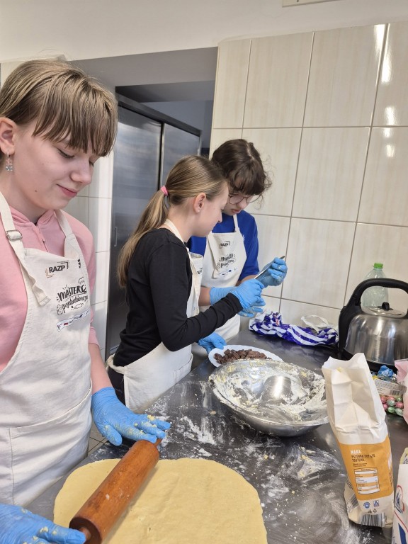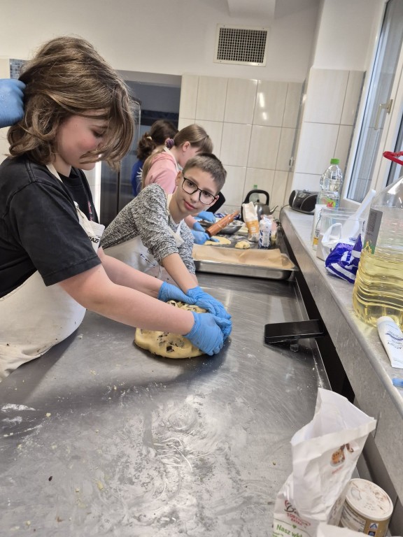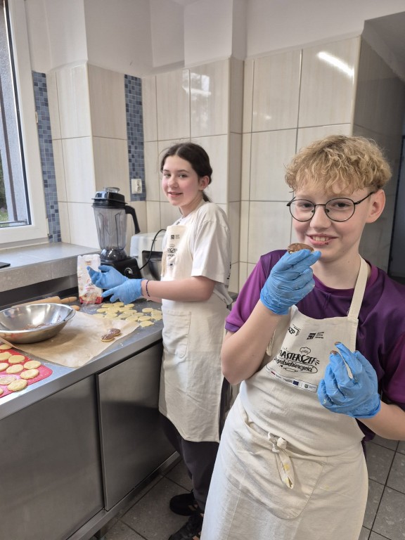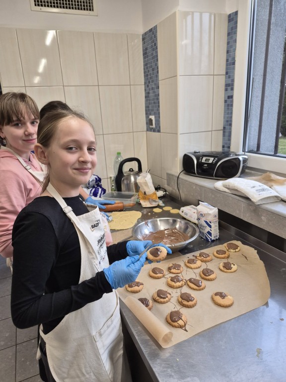 Pod troskliwym i zawsze uśmiechniętym okiem pani Ewy, naszej niezastąpionej intendentki, z ogromnym zaangażowaniem zabrali się za pieczenie ciasteczek.