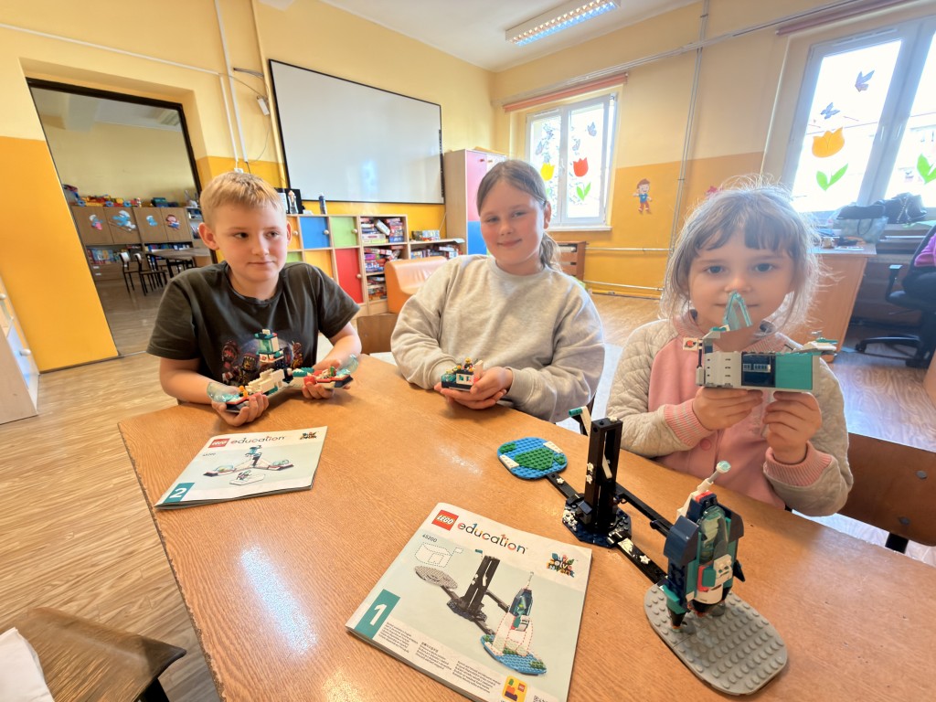 Podczas ostatnich zajęć dzieci pracowały z zestawami LEGO Education z ks. Danielem Waluszem w ramach kreatywnego projektu konstrukcyjnego.
