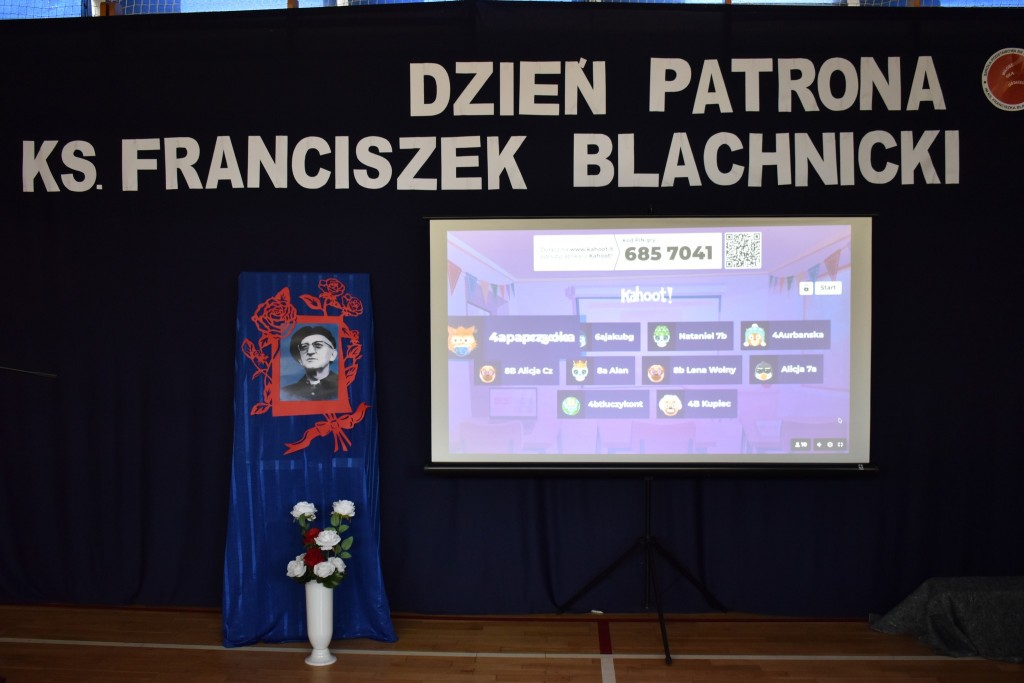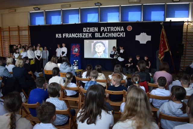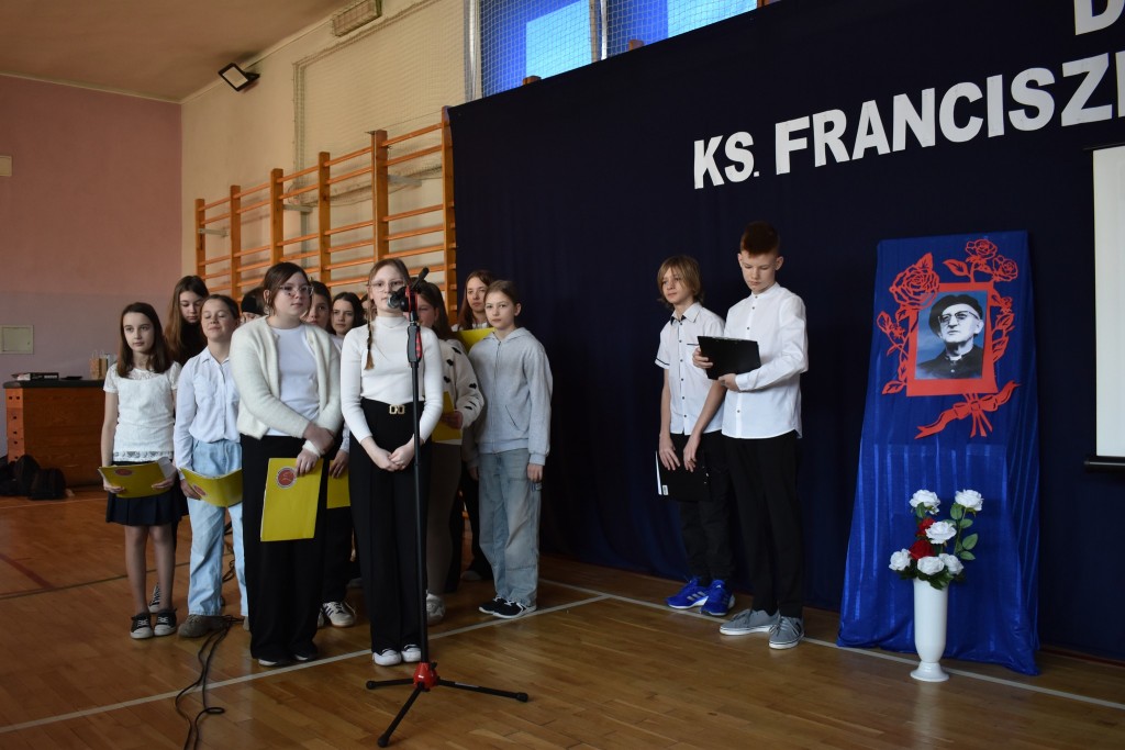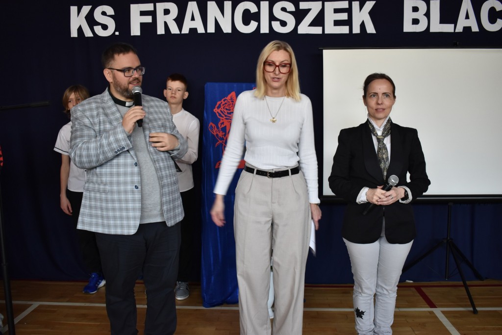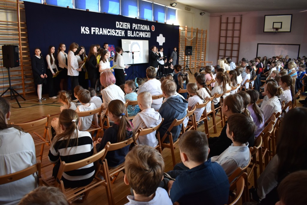 Po akademii wręczono nagrody w dwóch konkursach: dla klas 1-3 konkurs plastycznego na portret ks. Blachnickiego oraz dla klas 4-8 finał konkursu wiedzy o życiu Patrona.