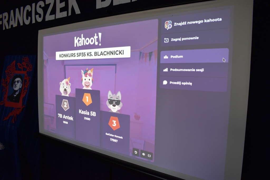 W konkursie wiedzy zwyciężyli: Katarzyna Trzebińska (5b), Antoni Winnicki (7b) oraz Amelia Kielar-Konsek (6a).