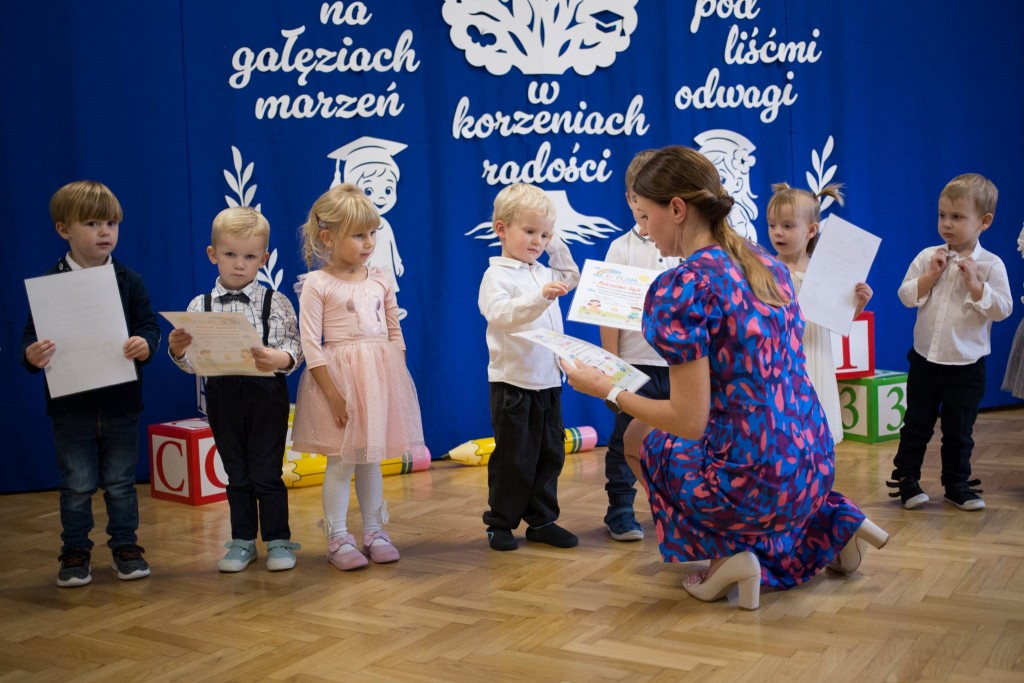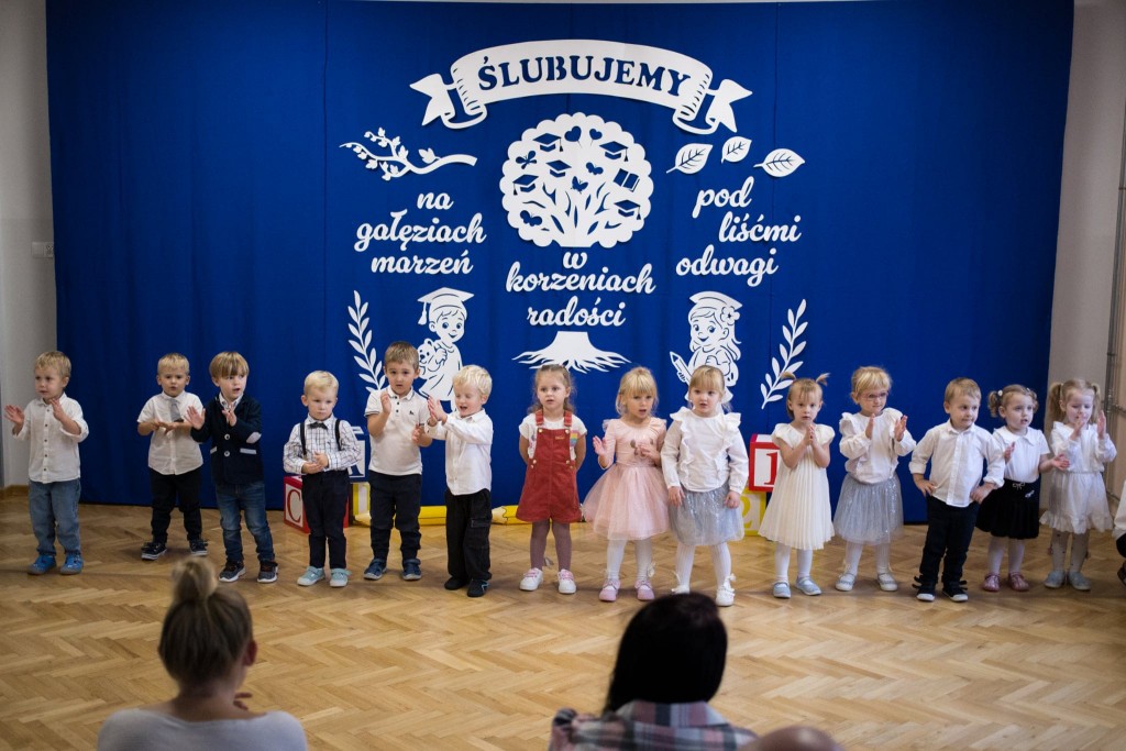 Dla wielu dzieci był to pierwszy występ przed duża publicznością. Najważniejszym momentem uroczystości było złożenie ślubowania i symboliczne pasowanie ołówkiem, po którym każdy z małych bohaterów otrzymał pamiątkowy dyplom.