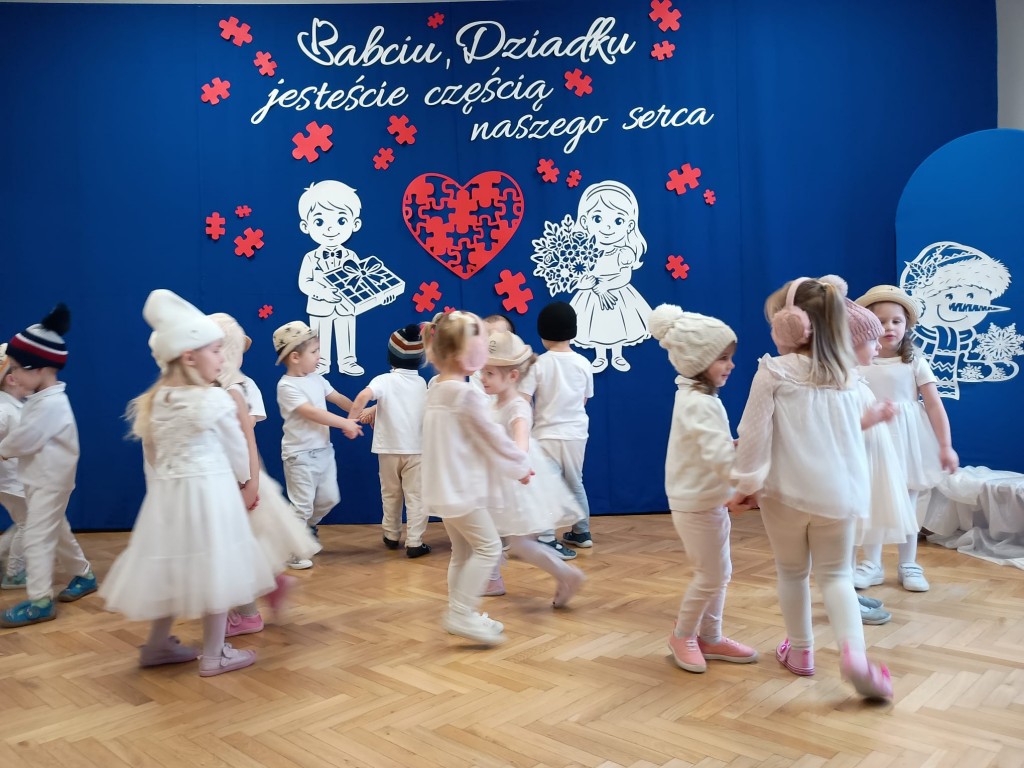 Było to wyjątkowe spotkanie, szczególnie dla tych dziadków, którzy po raz pierwszy uczestniczyli w takim wydarzeniu. Najmłodsze dzieci z wielkim zaangażowaniem zaprezentowały piosenki ilustrowane ruchem oraz krótkie przedstawienie pt. „Dziesięć bałwanków”. Był również wspólny czas przy poczęstunku i rozmowach.