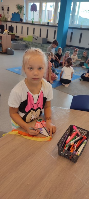 Słuchały opowiadania, rozwiązywały zagadki, bawiły się przy muzyce i zrobiły latawce. Dowiedziały się jaki może być wiatr (zimny jak lód, przyjazny jak dłoń, ciepły jak kaloryfer) i w jaki sposób człowiek wykorzystuje ten żywioł.